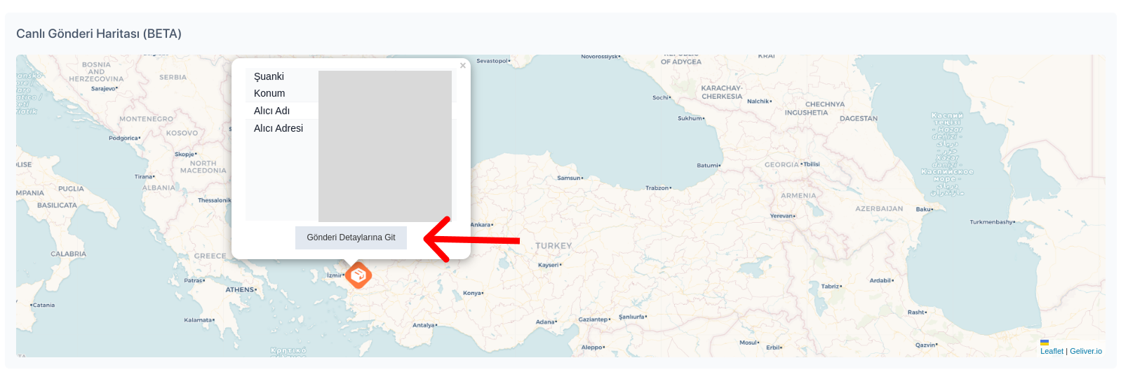 Sizler takip bilgisine Gönderiler panelindeki tablomuzda her gönderi satırında bulunan, butonuyla veya Ana sayfamızda bulunan Canlı gönderi haritamız üzerindeki işaretler aracılığıyla ulaşabilirsiniz.